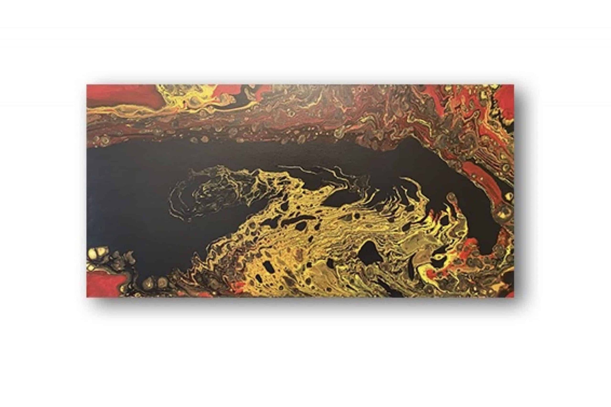 This paint pour was a beautiful surprise. I had no idea what to expect and then I began to see a firestorm come through. I pulled out my brushes and started to pull out parts, highlight and create more negative space. I really love it. It's a large, acrylic paint pour, matt finish and ready to hang.