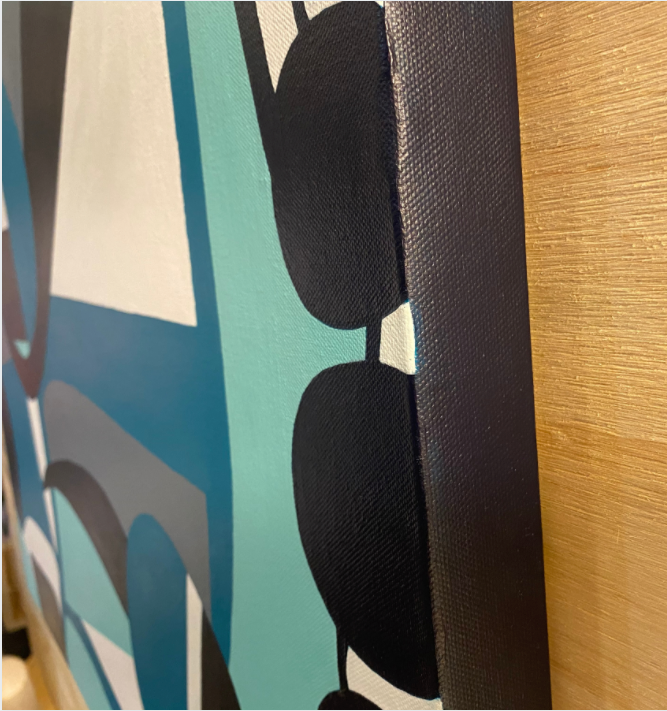 Interconnected is an acrylic painting on a large canvas. Every point of the painting connects with another. Much like the moments in our lives. I especially love the colour palette. It's been a favourite of mine lately.