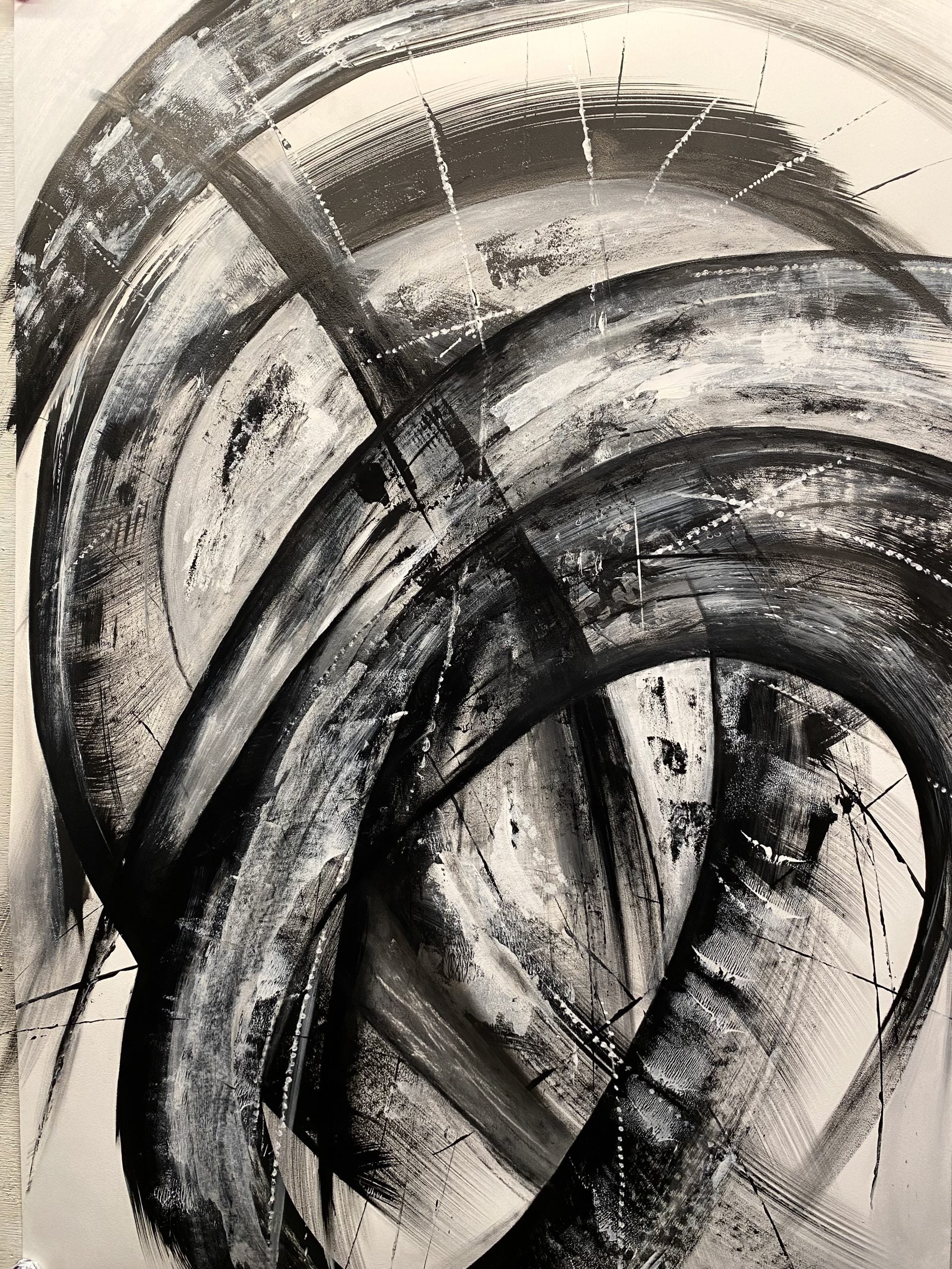 'Where to from here' is an abstract painting using India ink and acrylic paint. It's available in print in two sizes - A0 and A1.